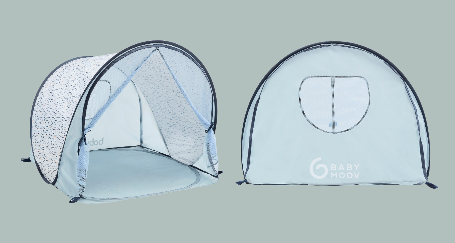 The Babymoov anti-UV tent is very easy to set up thanks to its pop-up system. It includes 4 tent pegs to secure into the ground. The anti-UV tent has a large central opening which can be tied back on either side easily made from a fine mesh mosquito net for protection against insects. It also has two ventilation windows at the back for increased air flow on a hot day. The tent fabric and ground surface is also water-repellent.