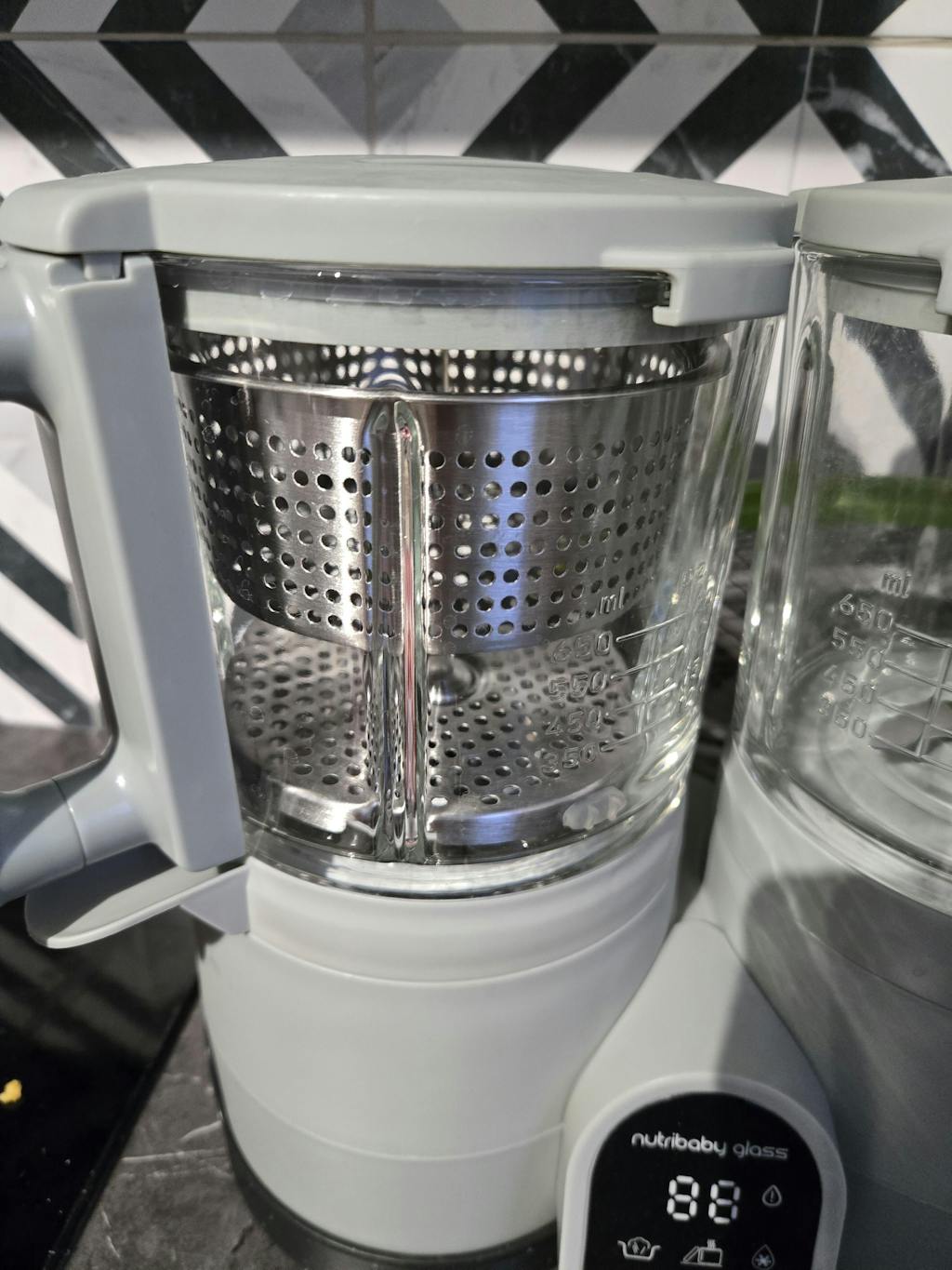 Made with glass and equipped with a stainless steel basket, it ensures healthy meal preparation, respecting your baby's health. Glass better retains its properties over time, ensuring prolonged use, especially with heating of food.